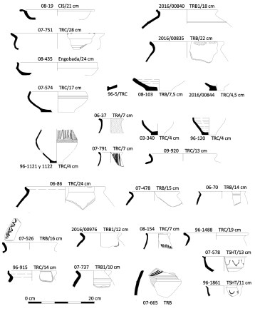 É onde están as producións típicas dos séculos II e IV d.n.e.? Simplemente, non están. É verdade que algunhas producións de cerámica común romana poderían ser deste momento, pero é o mesmo que cos CDs. Está cerámica común prodúcese durante moito tempo e a súa presenza non implica ocupación durante todo ese tempo. Non é, entón, un bo marcador cronolóxico. Porén, as producións dos séculos II e IV d.n.e. que si son deste momento non están. Non temos, por exemplo, cantidades significativas (e con «significativas» falamos de centos de pezas) de terra sigillata hispánica «lisa» (sen decoración) ou as primeiras producións de terra sigillata hispánica tardía caracterizadas pola ausenza de decoración ou polo que se coñece como «Primer estilo Mayet». Nós non vimos nada diso na nosa revisión. Ollo, iso non quere dicir que non haxa noutros lados do xacemento, senón que na revisión que fixemos (5700 pezas cerámicas) e nas publicacións non estaban recollidas nin hai contextos cerámicos claramente datados nestes momentos.