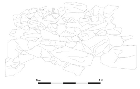 Esquina NL do chozo antes e despois do colapso