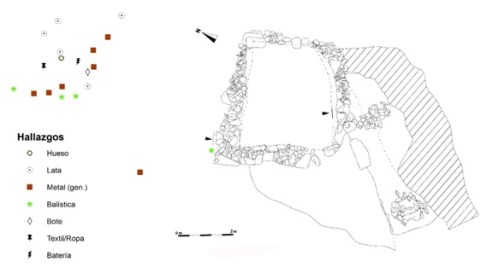 Dispersión dos achados no interior de Morteiras-1