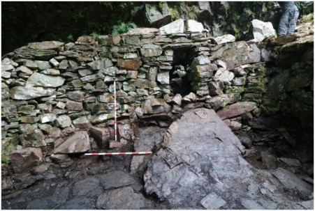 Zona este do corredor baixo o abrigo da rocha (UE 1008). Tamén se pode observar o muro divisorio UE 1009