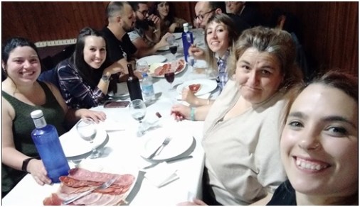 Para a nosa sorpresa, ela preparou un menú para un rexemento. De primeiro, tíñamos entremeses (queixo, chourizo, cecina, xamón…etc), de segundo fixo un guiso de xabalí de caza, un prato moi típico da zona, e de terceiro un bo prato de corzo. Como é normal, cando miramos a cantidade de entremeses que alí habíapensamos que íamos picar algo e marchar. Pero, para a nosa sorpresa, cando xa estabamos fartas de picotear aqueles manxares, aparecía outro prato, que Seve, con moito agarimo tiña preparado para que non quedaramos con fame despois de todo o día no monte.