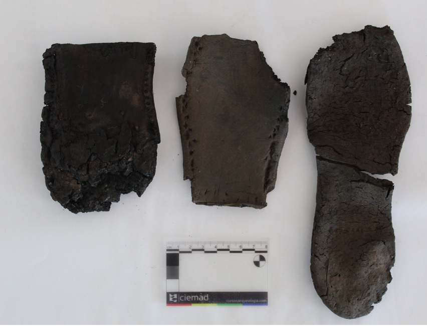 Conserváronse até tres solas de goma. Dúas delas (CS’18-1014-331 e CS’18-1014-332) atopáronse dentro do chozo Morteiras-1 e a outra (CS’18-OBJ-50) no seu contexto inmediato. Só unha delas (CS’18-1014-332) se conserva case enteira, de 23.5 cm de longo. As tres deberon de pertencer a botas de pel de becerro con sola de goma. leste tipo de botas eran comúns nas zonas de monte e moi prácticas nestes contextos. Durante a exhumación do guerrilleiro Perfecto de Dios en Chaherrero (Ávila), atopouse o corpo calzando un par de botas de pel de becerro posibelmente moi similares ás utilizadas polos guerrilleiros na Ciudad de la Selva. No caso de Chaherrero, este tipo de calzado foi recoñecido polo irmán de Perfecto: